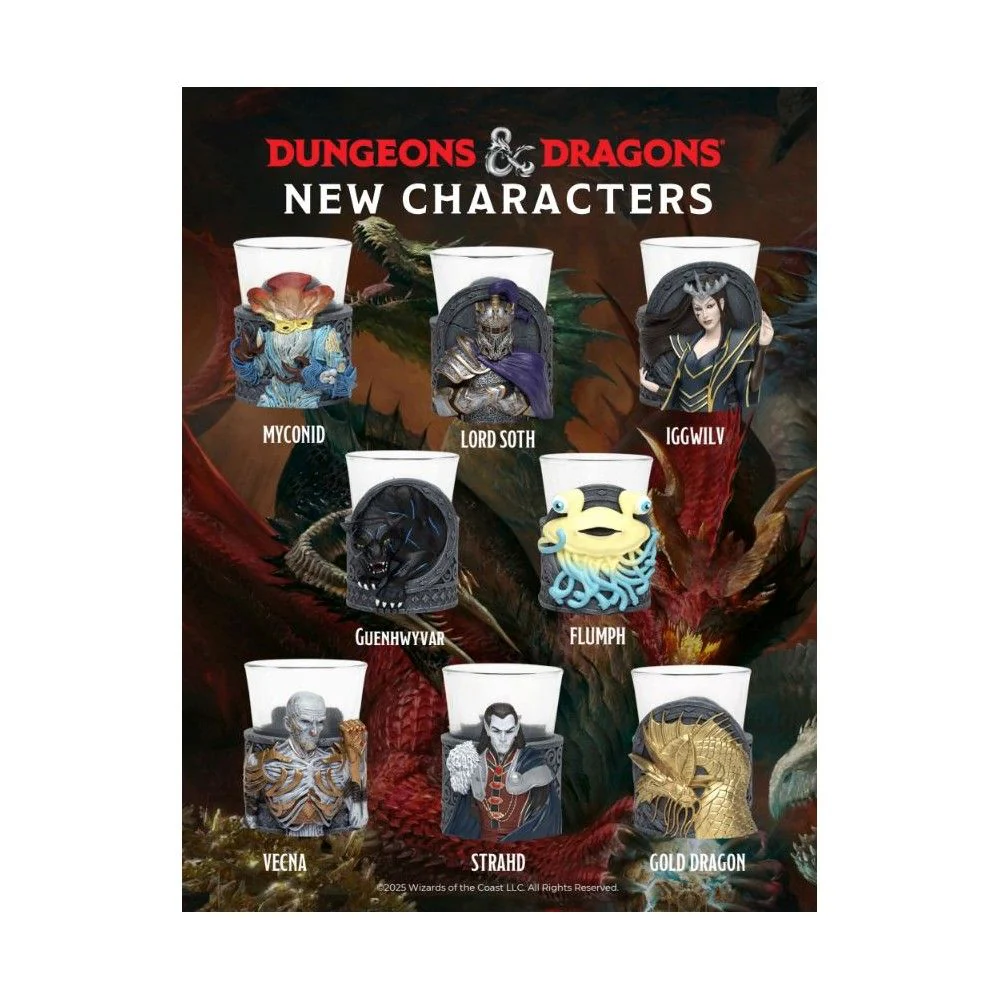 Uncover legendary power in the palm of your hand with the next wave of Dungeon & Draongs Mini Dice Cups. Each blind-boxed cup features a highly detailed sculpt of a classic D&D character—from the terrifying Vecna to the mysterious Guenhwyvar—and holds a 7-piece mini dice set inside.